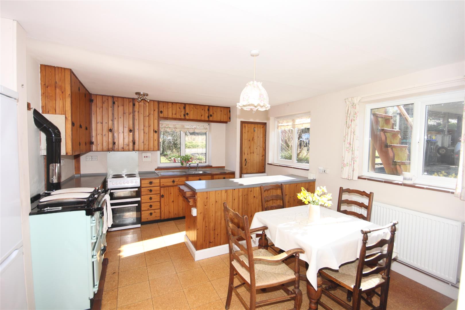 Double drainer sink, range of base and drawer units, plumbing and drainage for dishwasher, electric cooker point, oil fired Rayburn, radiator, wall light.