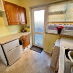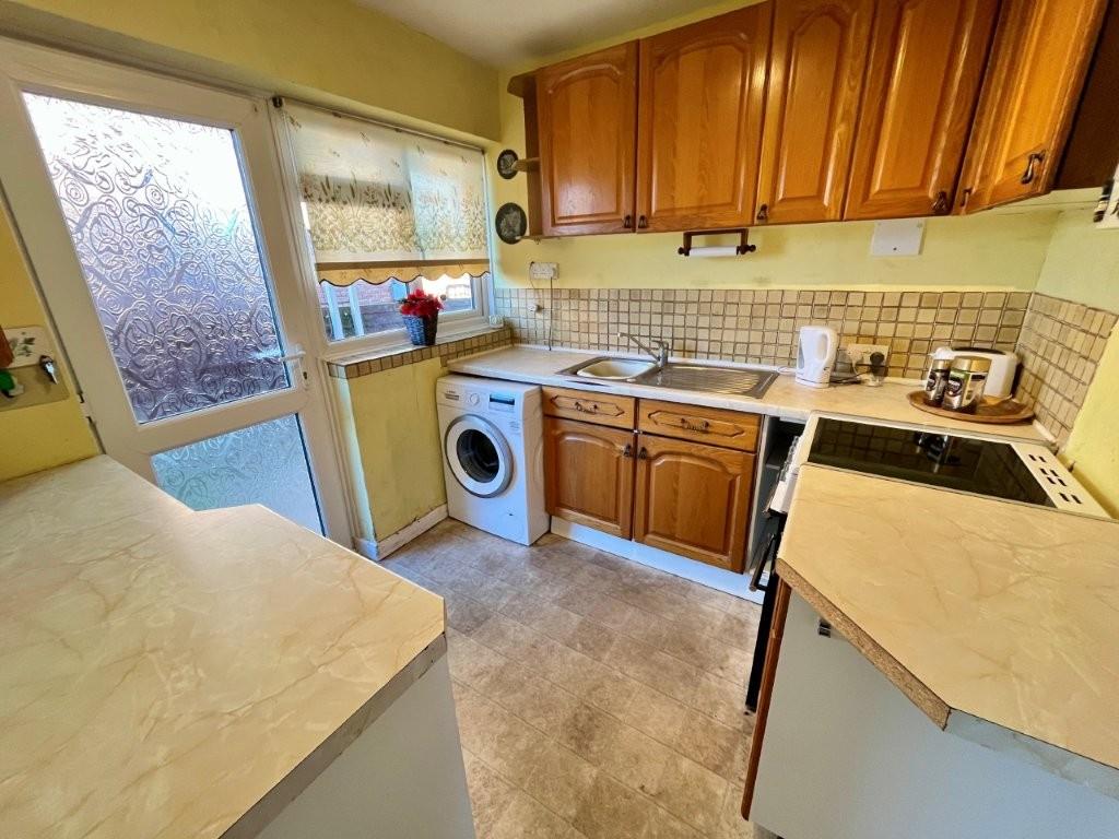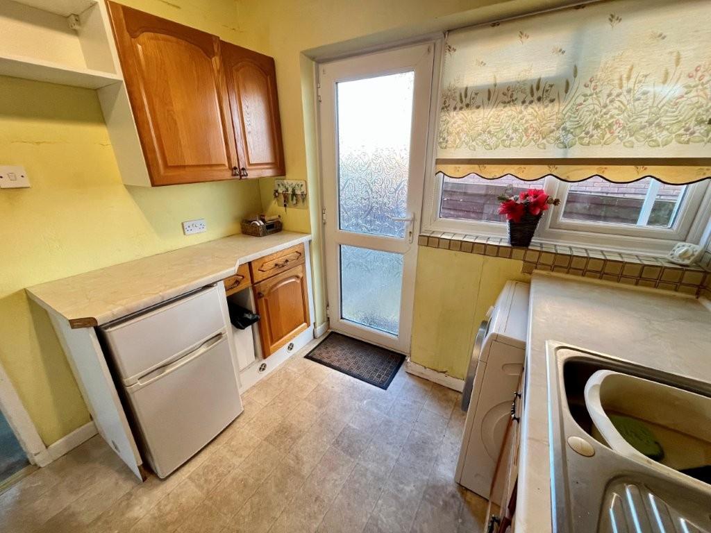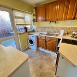 Wooden fronted wall and base units with worksurface over. Space for cooker, washing machine and further undercounter appliances. Inset stainless steel sink unit with mixer tap over. Wall mounted Worcester boiler. Double glazed door and window to side.