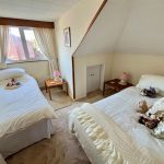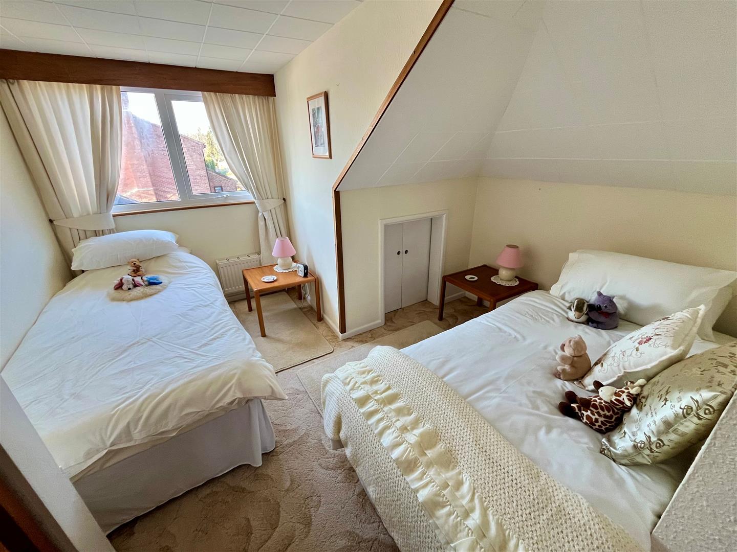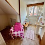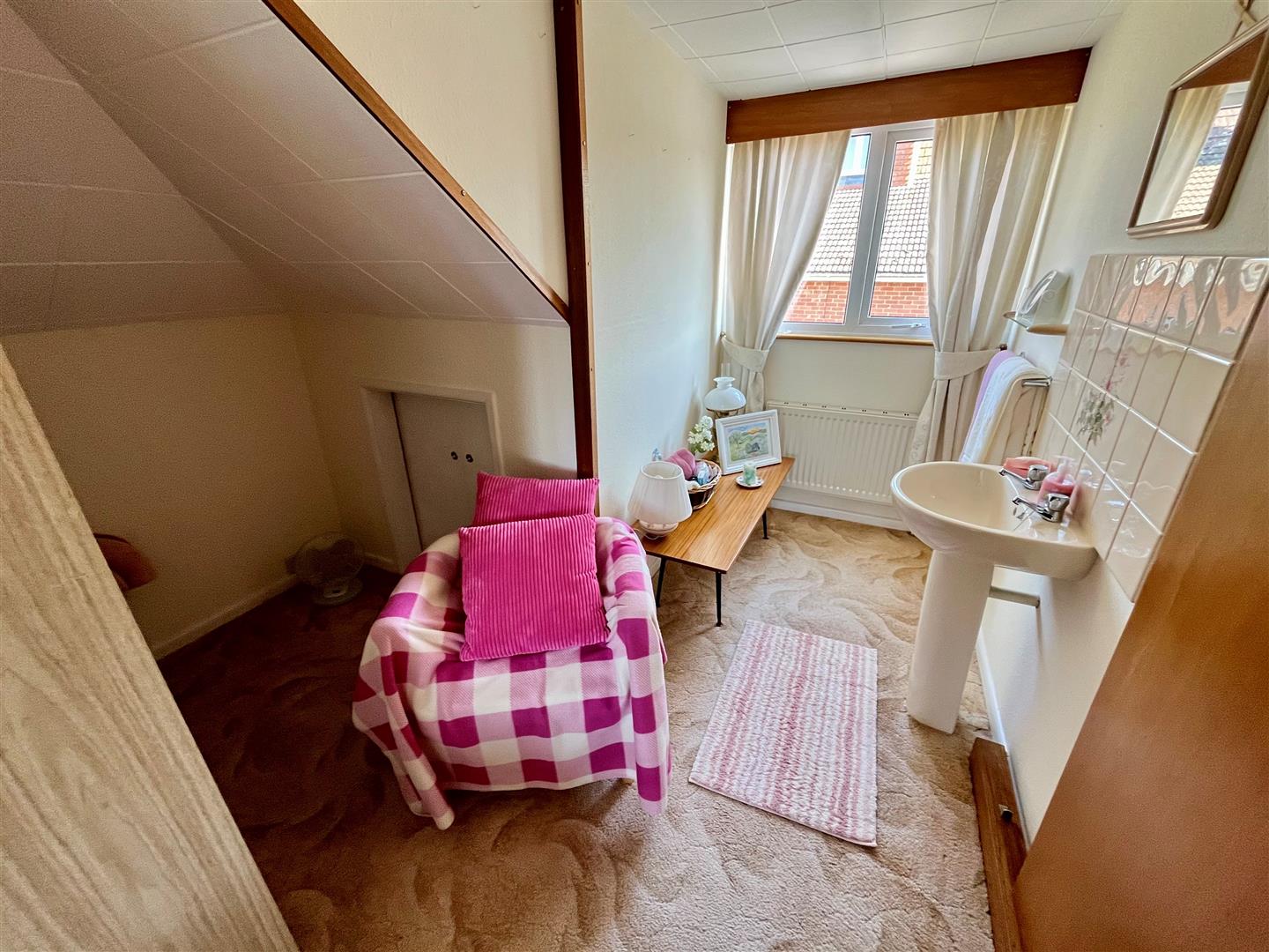 Formerly two bedrooms (which could be reinstated). Double glazed windows to either side, access to eaves storage, two radiators and pedestal basin. Sliding door to: