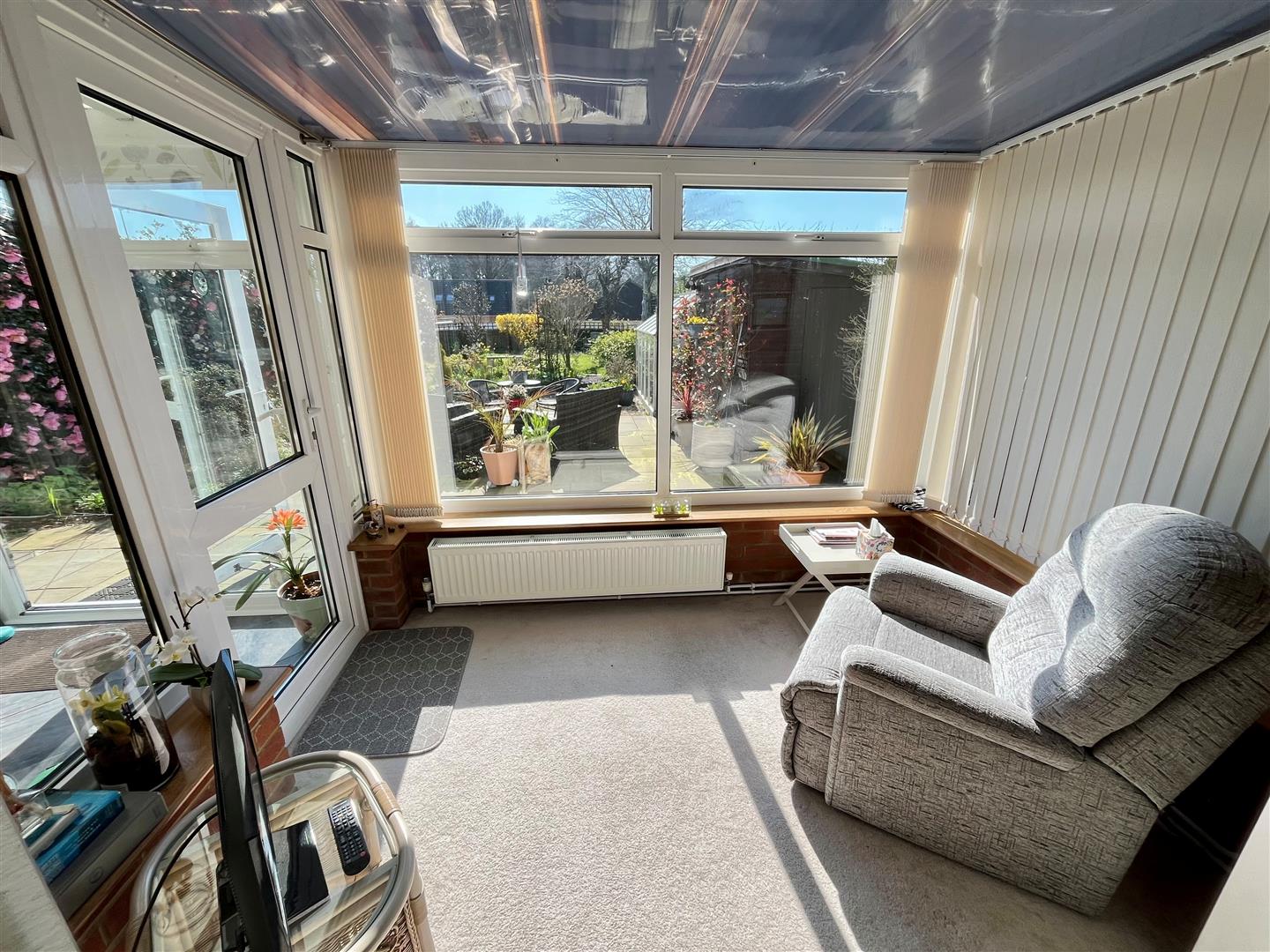 Lovely double glazed construction with performance roof providing a lovely view over the garden. Radiator and power.